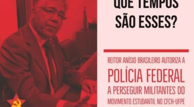 QUE TEMPOS SÃO ESSES? Reitor Anísio Brasileiro autoriza Polícia Federal a perseguir militantes do movimento estudantil no CFCH-UFPE.