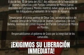 Pela Libertação dos 04 Militantes do Partido Comunista do México (PCM) e da Federação de Jovens Comunistas (FJC)